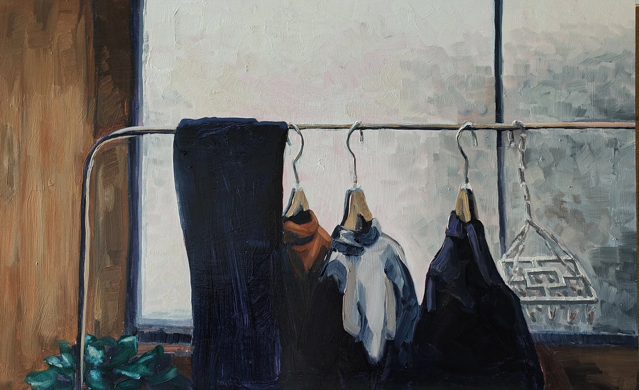 Hung Up 2025, Oil on Board, 40cm x 25cm.